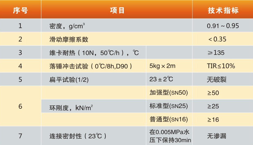 MPP單壁波紋管 (HFFB電力管) 技術指標